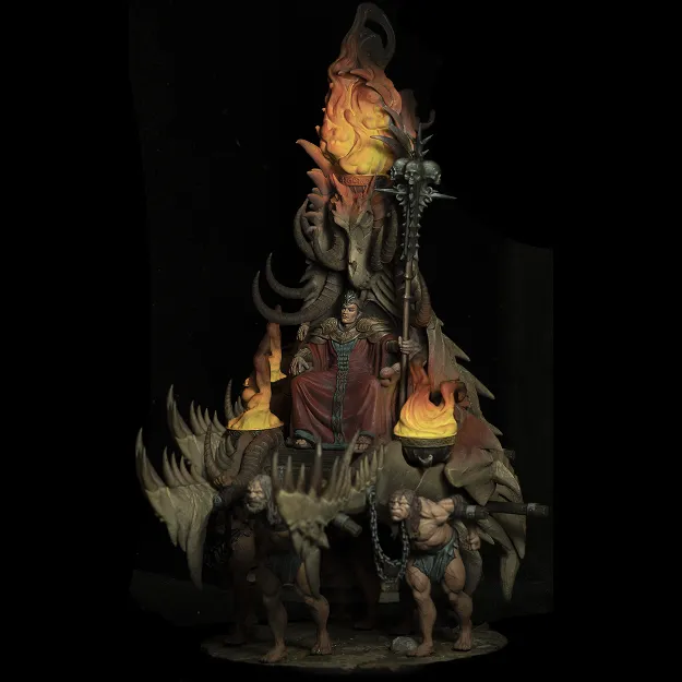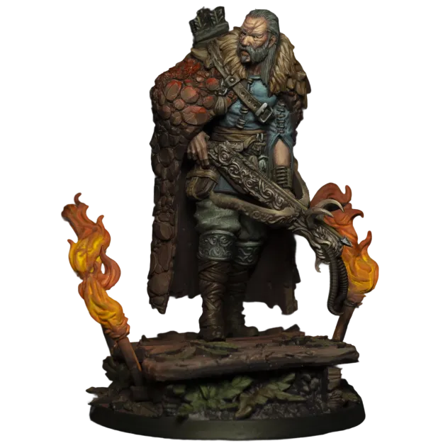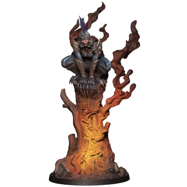 The Ember King is the first of the Ascended, chosen by the dark god and forever marked by the pact that bound humanity to fire and knowledge. It was he who received the vision of mankind’s future, an empire of bronze and flame rising from the ashes of the Wyldwood. To him, the ancient forest is nothing but fuel for progress, kindling to ignite the dawn of civilization. Keeper of the forbidden rite of ascension, he alone knows how to raise the proto-humans of the wild and shape them into new servants of his cause. Unlike his kin, who stumble through their newfound minds in madness or confusion, the Ember King bears the terrible weight of clarity. Set apart by wisdom and burdened with divine purpose, he is both architect and tyrant.