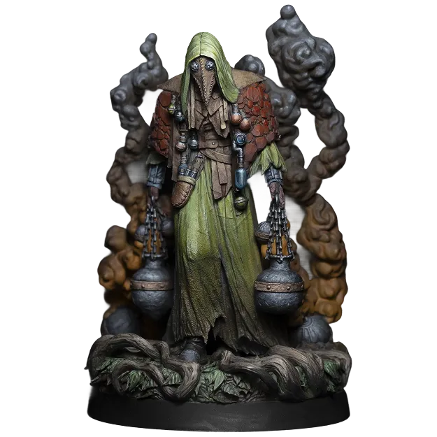 The Fuelwright Masters are the shadowed alchemists of the Emberhold, a secretive order whose experiments mark the first steps of human science, though born from madness and blasphemy. Cloaked in secrecy, they guard the hidden formulas for Wyldfire, the unnatural flame that consumes all, and the sacred poisons that wither forest, beast, and spirit alike. Slipping ahead of the brigades, they seed the land with venom and ash, clearing life before axe or torch need touch it. Yet their craft is not only destruction: through grisly harvests of spirits and forbidden rites, they distill volatile draughts that can mend wounds as easily as they unmake flesh. Feared even among their own kind, the Fuelwright Masters embody the perilous edge of human ingenuity.
