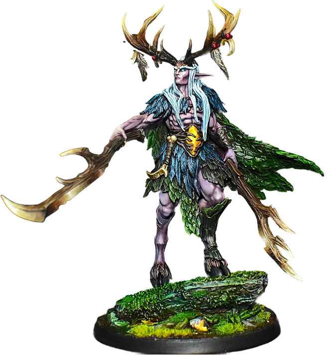 The pinnacle of elven ferocity, a towering, antler-crowned warrior who earned their title through ritual combat against their kin. Only the strongest, fastest, and most cunning bucks rise to this role, their dominance marked not just by their stature, but by the razor-sharp swords they forge from their own shed antlers. These blades are as unique as their wielders, each one grown, shed, and carved across the seasons of a warrior’s life. In battle, the Alpha is the first to charge, reckless and proud, eager to prove their strength and protect the herd. Yet their role is not just one of fury, they are mentors to the young, passing down the art of the war, the discipline of the duel, and the hard-won wisdom of surviving the Wyldwood’s many dangers.