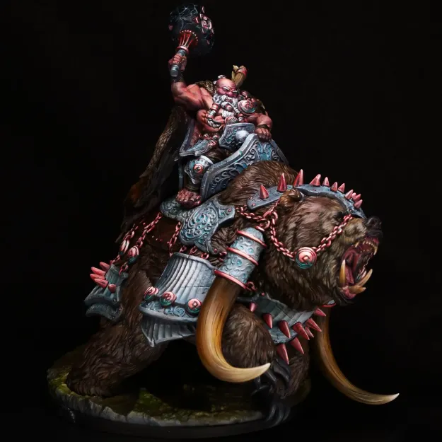 Among the scattered clans, each ruled by its own elder and war-chief, there is only ever one king, and only the gods can choose him. Once every fifty years, the clans gather, sharing stories, honoring ancestors, and daring their bravest to face the final trial: the taming of a great cave bear. Most who try are broken, torn, or forgotten. But when one succeeds, he is crowned not by vote or birthright, but by survival. For only the Urscar King rides a great cave bear into battle, and he rules until either he or the beast falls. Generations may pass without a king, the clans splintered but waiting. And then, roaring from the mist, crowned in fur and stone, he returns. Clad in relic armor and weapons worthy of gods, the Urscar King is more than a leader. He is myth made flesh.